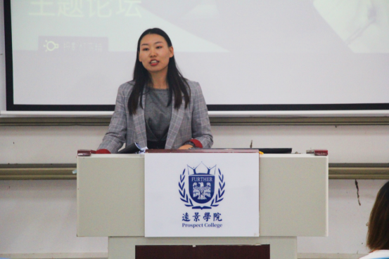 邱宇,远景学院2013级工商管理专业的校友,现为邮政储蓄地方营业厅-负责人,她向同学们讲述了进入职场后要学会“收和放”。在后面的分享中她还讲了一个关于“罗德岛”的小寓言,这个小寓言向学弟学妹们表达了不要怕尝试,有时候脸皮一定要厚,要敢于争取,敢于表现自己。虽然有些事情是尽人事听天命,但有些事情像孙中山先生说的“知难行易”。