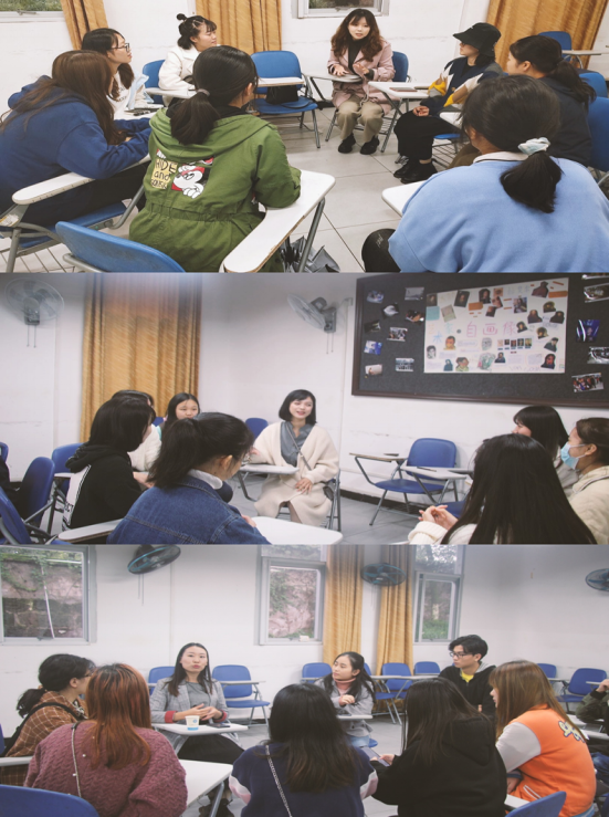 分享结束后,也迎来了本次活动的“特色”部分——校友的专属职业咨询;3位校友与同学们分成两组分别在多功能教室一和多功能教室二展开了单独的咨询和讨论,同学们根据自己的兴趣和咨询意向分别到两个教室去。3位校友也针对各个同学们提出的不同问题,再结合自身的经历和看法进行了针对性的讲解,同学们受益良多。