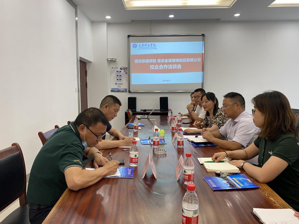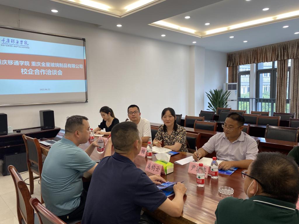 6月22日,我校与重庆金星玻璃制品有限公司校企合作洽谈会在我校行政楼A栋417会议室召开,重庆移通学院校长助理尹浩亮、合川区清平镇副镇长尹大琦、重庆金星玻璃制品有限公司庞光伟、姚元彬,德国工程学院副院长侯宇晶、艺术传媒学院副院长张梅、外国语学院副院长罗琳、就业创业指导与服务中心华雯老师等12人参加会议。会议由校长助理尹浩亮主持。