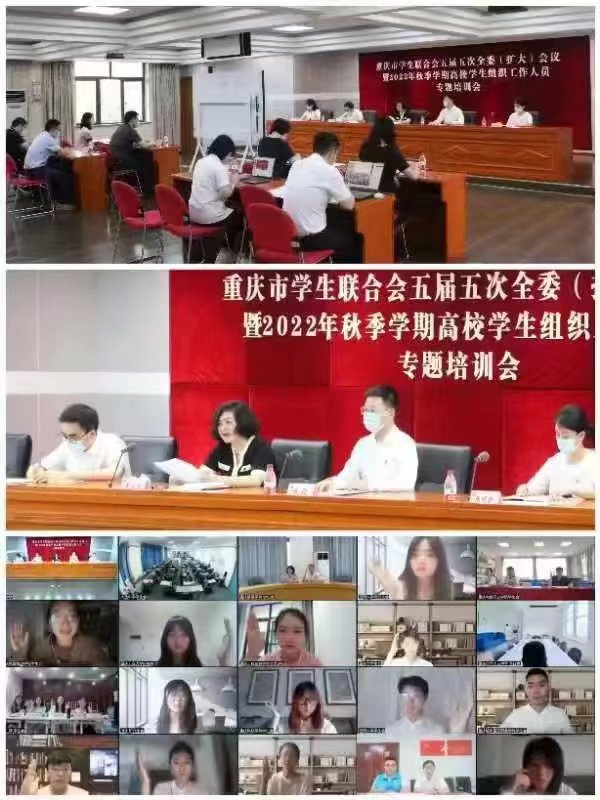 为深学笃用习近平总书记关于青年工作的重要思想,深入学习习近平总书记在庆祝中国共产主义青年团成立100周年大会上的重要讲话精神,贯彻落实市第六次党代会精神。重庆市学生联合会特于2022年9月16日至9月17日,举办重庆市学生联合会五届五次全委(扩大)会议暨2022年秋季学期高校学生组织工作人员专题培训会。本次培训采用线下部分集中参会、线上录屏转播的方式进行,重庆移通学院学生会全体工作人员、学生会秘书长和学生社团管理中心负责人积极参与了此次培训,致力于学习巩固深化学联学生会改革,持续加强学生社团建设管理,提高学生组织会工作人员政治素养和工作能力,改进工作作风。
