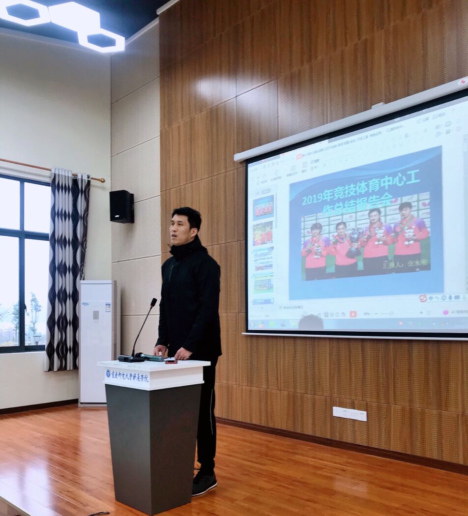 接下来,竞技体育中心张主任,就体育教学部与整个竞技体育中心的工作作了一个整体的汇报与总结。