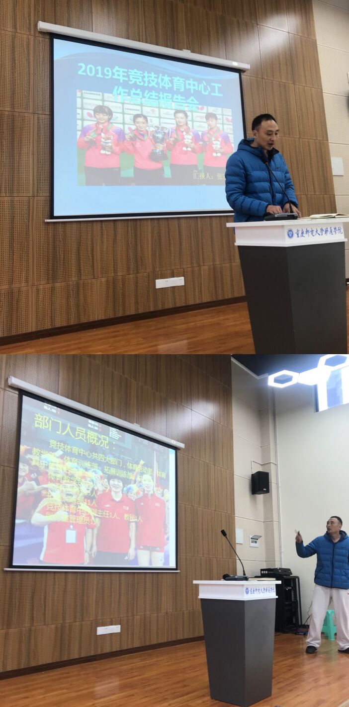 12月25日下午3时整,竞技体育中心全体教职工在天渠111报告厅参加了竞技体育中心2019年度工作总结报告会。