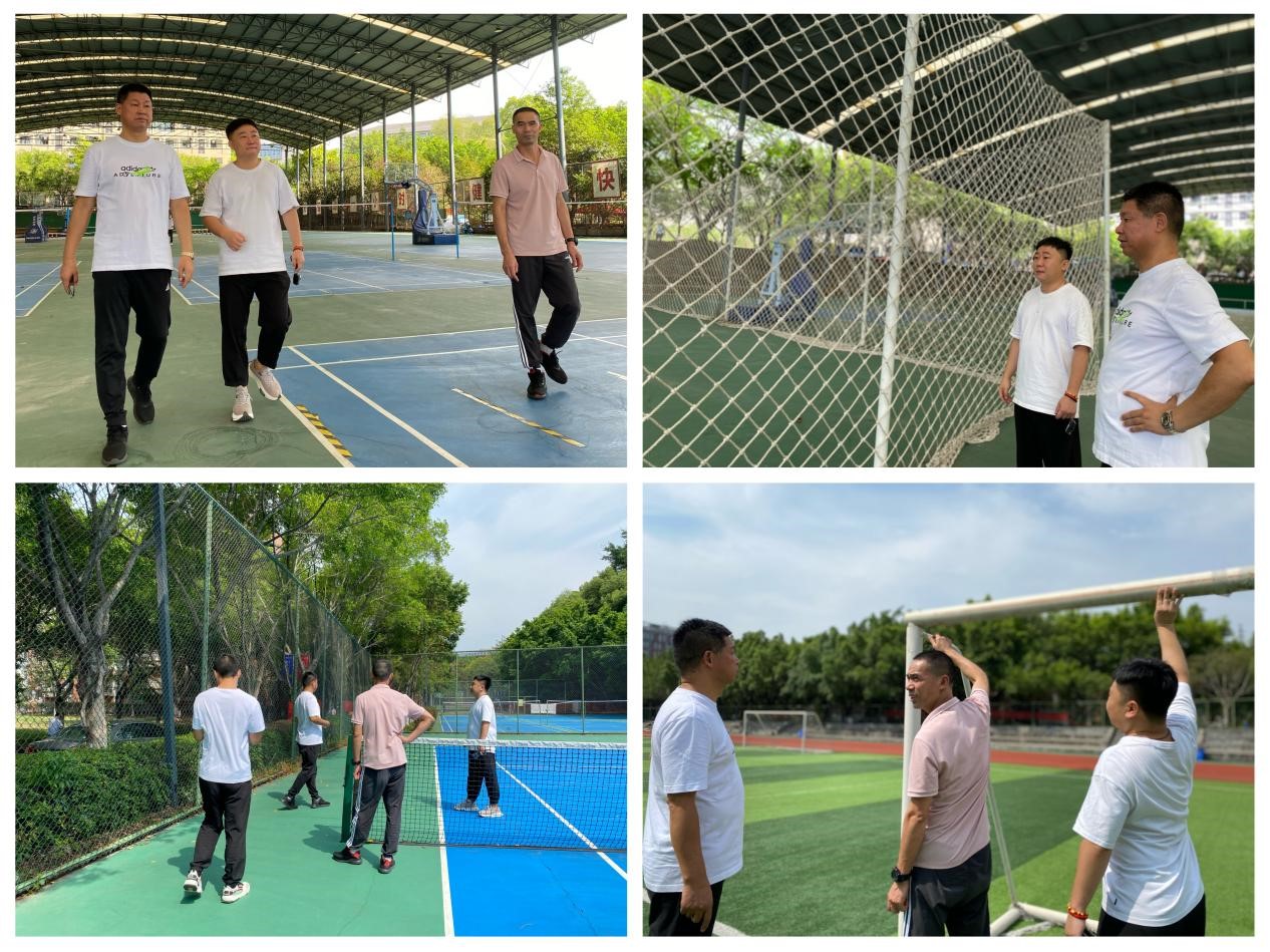 最后,刘主任与各部门主任一起,对全校南北两个校区的所有运动场地、拓展基地进行了实地安全检查,以防止运动设施老化和运动场地损坏而使学生发生安全隐患。在排查过程中发现两块足球场地的足球门有不同程度的损坏,风雨球场的篮球筐也有损坏,并联系相关部门解决此等安全隐患。