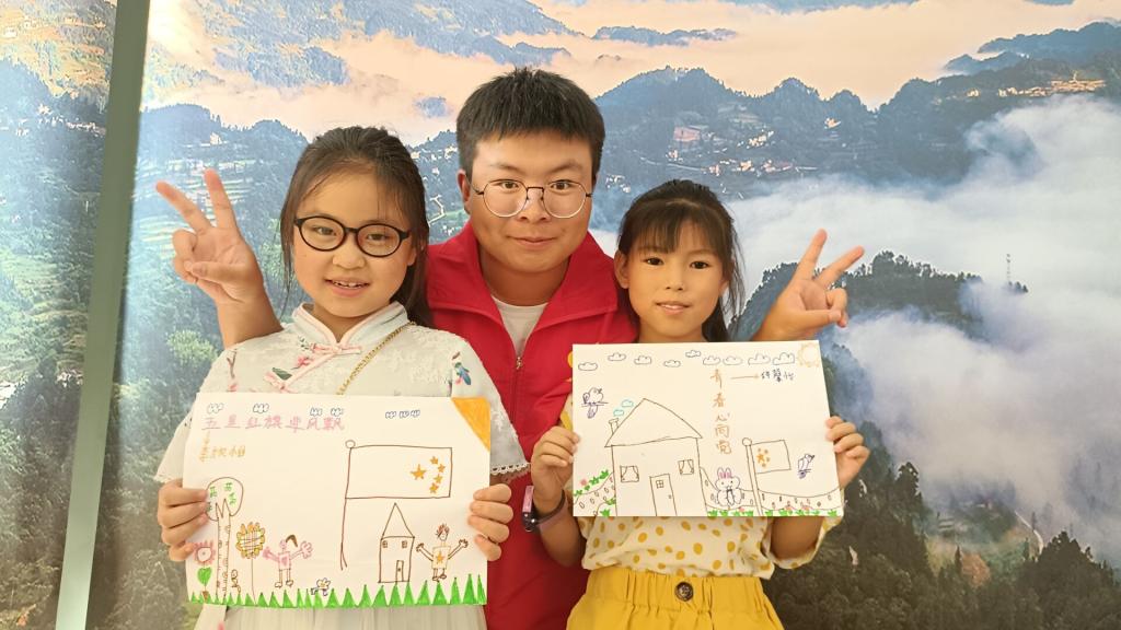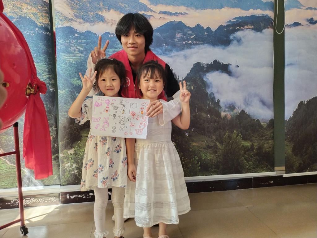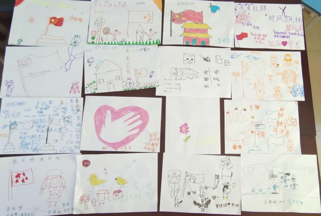 志愿者们带着满满的期待与热血向此次的目的地水市乡水车坪进发。 下午2点,大家一起召集当地的孩童,通过画画、唱歌、手语操等形式来宣传当地的红色故事与精神,牢牢把握百年党史的丰富内涵和实践要求,不断深刻领悟中国共产党人精神谱系的构筑与赓续、精髓与实质。用五彩的颜色描绘出大家对党、对国家忠贞不移的爱。一幅幅稚嫩的童画,映照着一张张稚嫩的童脸,彰显着一颗颗对祖国纯真的童心。