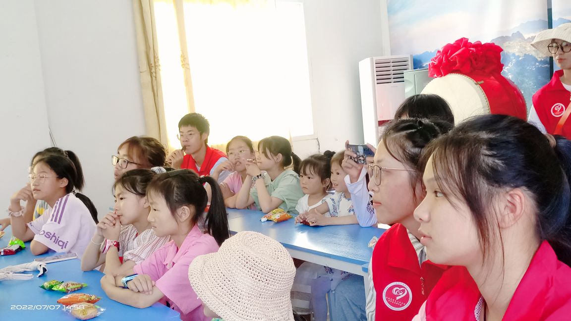 蝉鸣迎着盛夏,暑气蒸熏,可这阳光挡不住志愿者们的活力与热情。2022年7月7日“赓续红粹,移綦黔行”党史学习教育团在重庆市黔江区水市乡学雷锋志愿服务站以“宣扬红色精神,宣传红色故事”为活动主题带领小朋友们进行党史宣讲活动。101年的风雨兼程,101年伟大跨越,面对新时代的“新答卷”,志愿者们以党史学习教育为契机,进行了本次的三下乡青年志愿活动,活动主要以党史文化宣传为主,旨在传承党史文化、关爱儿童、激发青年学生的爱国热情。