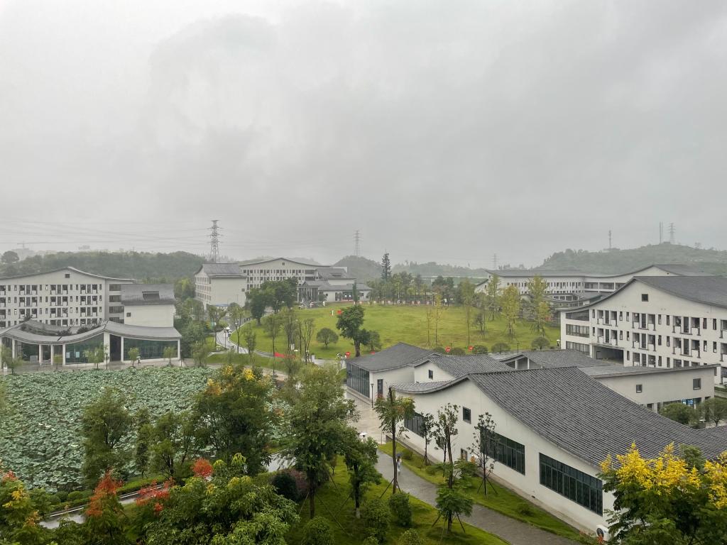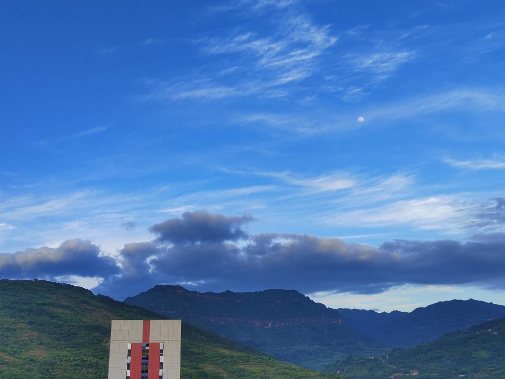 “这是傍晚时分宿舍窗外的风景,有淡淡的云还有明亮的月,风也舒适心也温柔,希望你们也可以看到綦江校区的美景。”(邹慧慧同学)