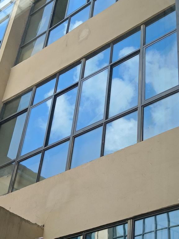 “图书馆的外窗反射出静谧的蓝天白云,我想留住这一瞬的美丽。” (蒲静同学)
