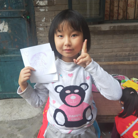 害羞的女孩,一直不愿意参与其中,但是满眼的渴望让人看着心疼。志愿者拉着她的小手,拿起卡纸和彩色笔,跟她一起涂鸦出五彩的世界。尽管不是专业的画家,但是用心作出的画总是格外的吸人眼球,格外的有趣。每一个动作、每一笔描绘、每一根线条、都是爱的付出与心的交换,在阵阵欢笑声中拉近了彼此之间的距离。