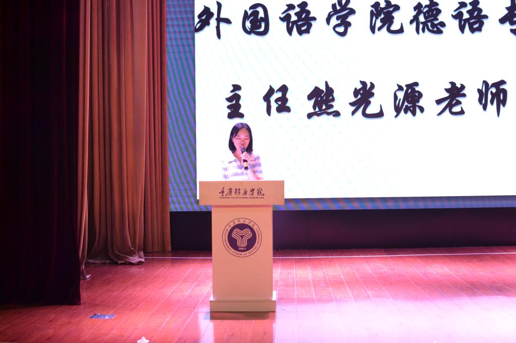 熊光源老师作为教师代表为闭幕式致辞,她讲到,英德语言文化节不仅仅是交流与学习的舞台,同时也是外国语学院薪火相传的文化,为学生学习和使用英、德语这两门外语营造浓厚的氛围,培养学生的综合素质,为实现学校全面发展人才的目标作出贡献。