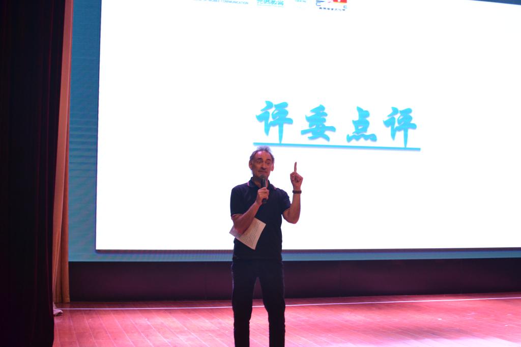 现场播放一段关于同学们给人气外教Clive精心准备的一段感谢视频,感谢他这十年来陪着外院学子共同成长,感恩他为英德语言文化节付出的汗水。这让在场的Clive十分惊喜,感动得潸然泪下。
