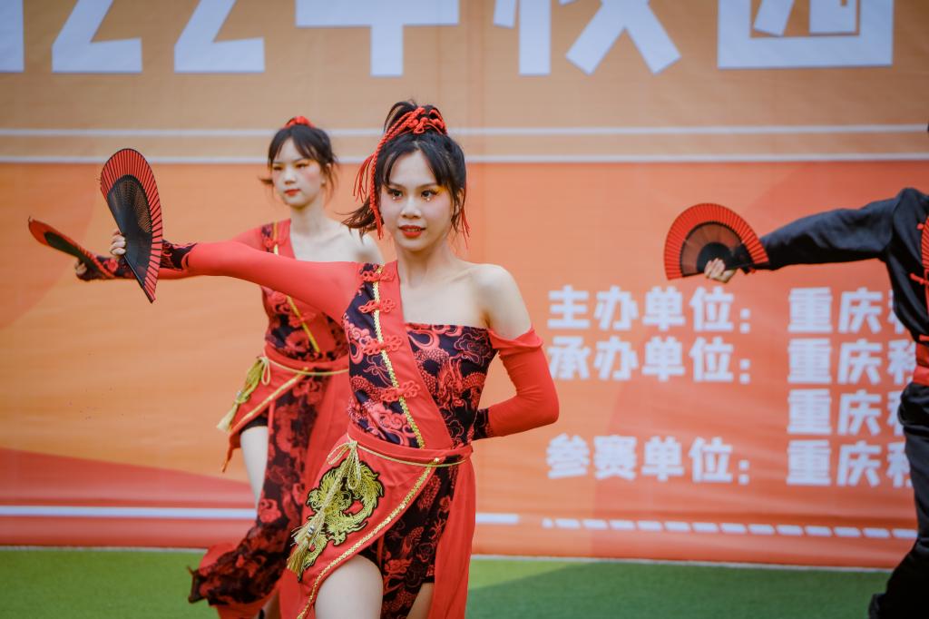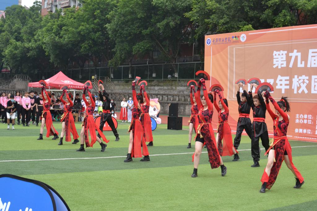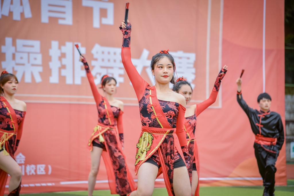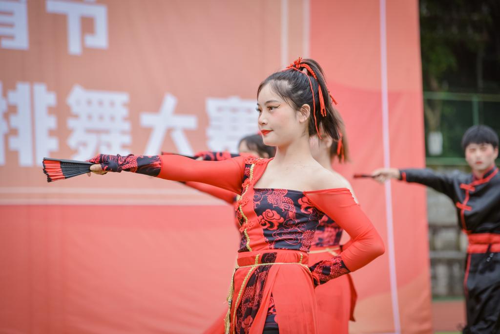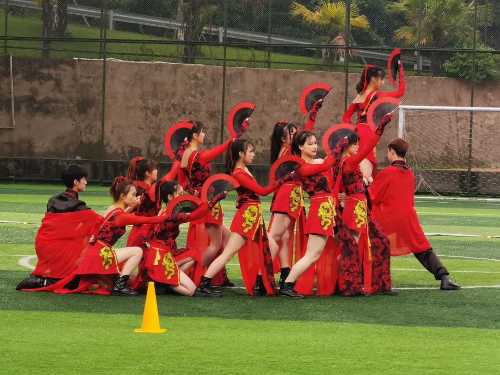 外国语学院排舞队选择的规定表演曲目——《骁》,不仅歌词与旋律透出新生代中国力量和无所畏惧的骁勇精神,他们灵动有力的舞姿也展现出外国语学院的拼搏勇气与敢于探索的枭雄之气。清一色的黑红舞蹈裙,利落的舞步,飒爽的身姿,为现场的师生呈现一场视觉盛宴,现场应援欢呼声此起彼伏,舞蹈虽落幕但现场的掌声经久不息。