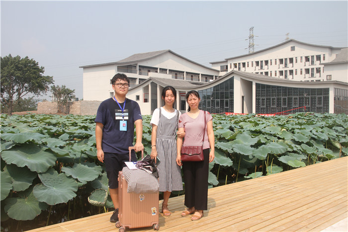 智能工程学院新生阳开烺同学(重庆 永川)和父母在D区梅若书院合影