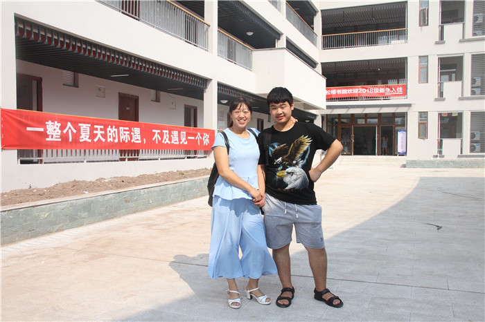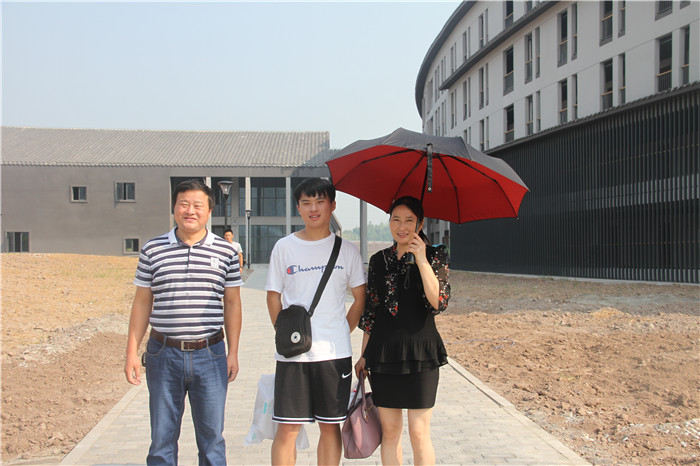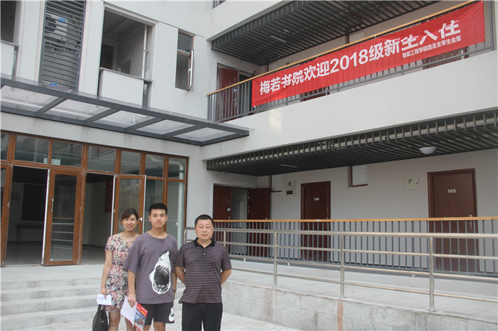 智能工程学院新生余航同学(安徽)和父母在D区竹逸书院合影