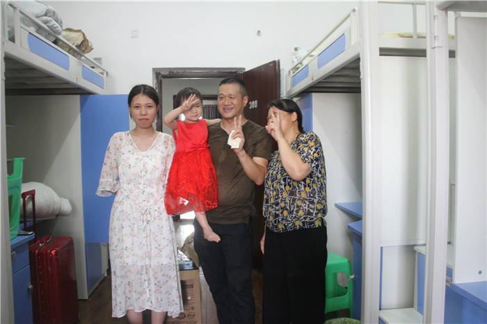 外国语言文学系新生程思露同学(重庆)和父母、妹妹在D区天渠书院宿舍合影