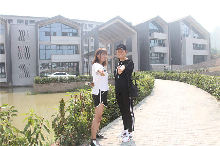 外国语言文学系新生赵莉同学(山西)和周佳裕同学(山西)在D区竹逸书院合影