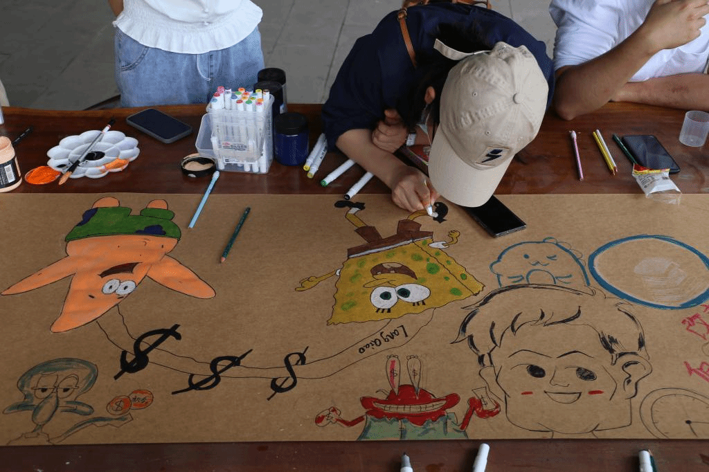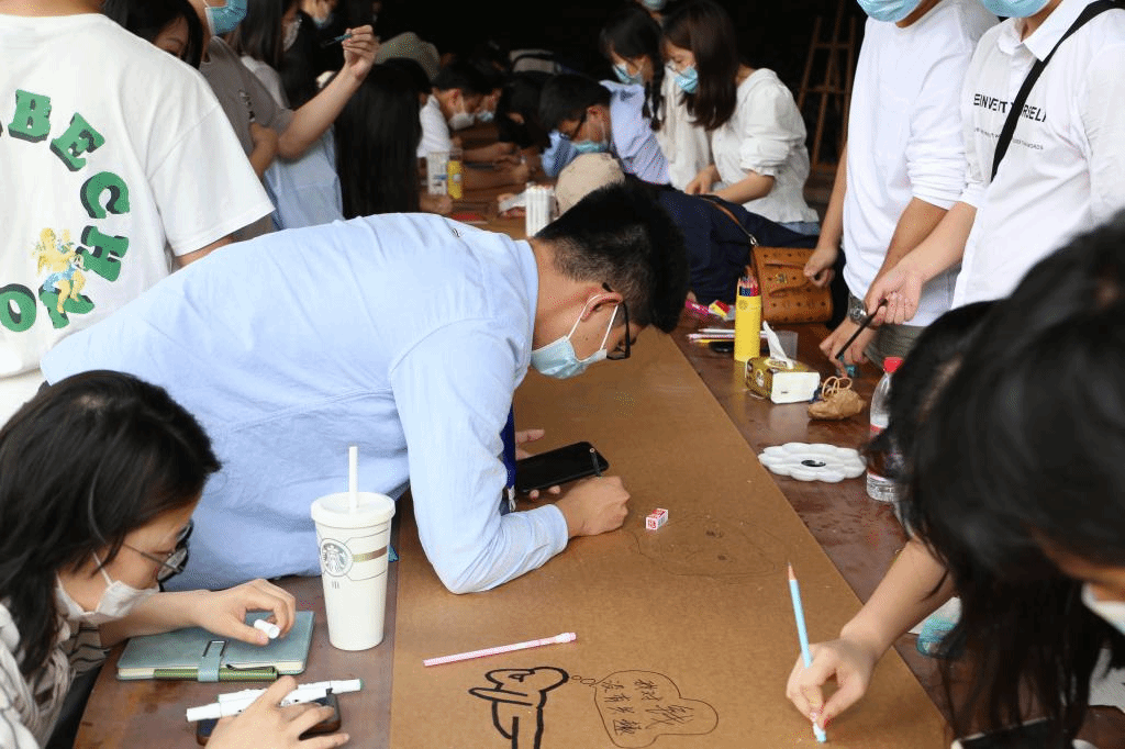 大咖问答环节过后,各书院师生依次落座,在各自分好的区域进行自由创作,40分钟的创作时间中,大家创意十足,或将大咖人物形象描绘在画卷上、或将自己的书院文化与大咖风采相结合、或将学生喜爱的卡通形象跃然纸上,师生在欢声笑语中共情共创,感受书院温暖家文化、师生碰撞思维火花,在书院氛围中体悟大咖精神。