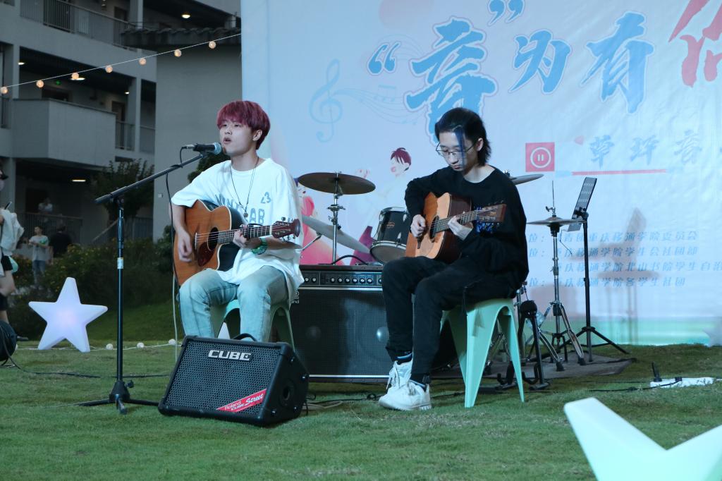 红色五月,青春飞扬,习近平总书记始终高度重视文艺工作,在全国教育大会上指出:“音乐教育作为美育的主要组成部分,有着‘以美塑人,以乐化人’的积极作用。”为丰富学生精神世界,感受音乐之美,让学生敢于放声歌唱,勇于展示自己,疏解学习压力,寻找志同道合的伙伴,实现朋辈互助新圈层。2022年5月20日,重庆移通学院学生会社团部、北山书院携手校乐团,在疫情防控的要求下,在北校区行者公园草坪联合举办社团文化艺术节专场草坪音乐会。本次活动邀请美食协会、DIY协会、花卉协会、流行音乐社、To拓说唱社等社团,现场气氛火热,反馈良好。