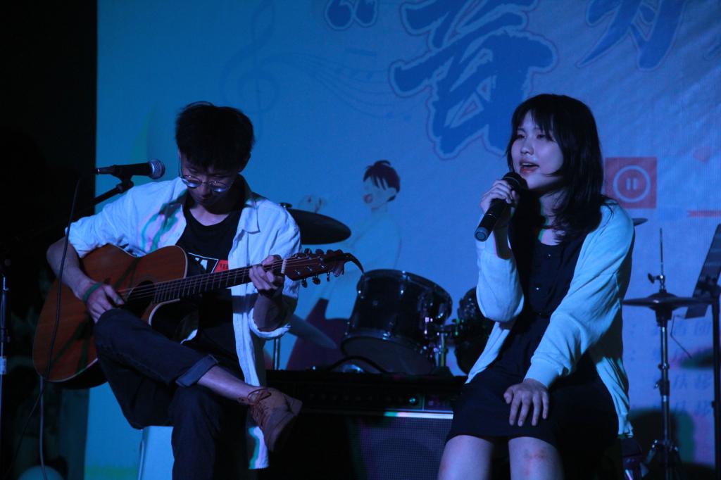 流行音乐社以一首《哪里都是你》开场,让现场气氛渐入高潮,刘婷同学一首清唱,直接点燃了全场观众。观众互动也越来越积极。参与情歌对唱,猜歌名的观众层出不穷。到了这一环节,大家都使尽浑身解数,为了猜对歌名各显神通,有的学生抓耳挠腮,有的学生使用场外援助。