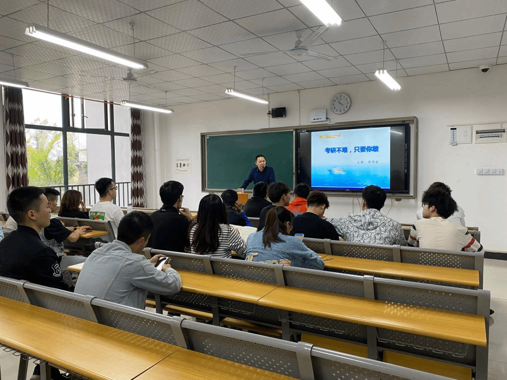 活动最后,李老师向在座的学生提醒到:考研是少部分人的事情,作为大二大三的同学们,无论是课程复习,还是心理准备,都应该做好吃苦准备。考研不是一件简单的事情,不但需要懂得坚持,还需要内心强大。只有这样,才能在经过将近一年的努力后,往往才会得到我们想要的结果。
