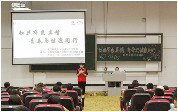 夏近叶成帷。本着普及艾滋病相关知识,帮助广大学生了解、预防艾滋病的目的,5月16日,由重庆邮电大学移通学院学生处主办、大数据与软件学院02141704团支部与天使关“艾”志愿服务专项支队承办的“红丝带系真情,青春与健康同行”预防艾滋专题交流会如期在3203教室举行。