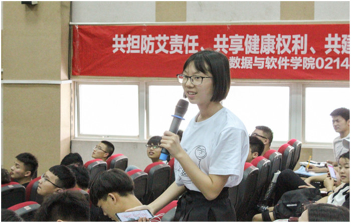 交流结束后,大数据与软件学院02141704团支部、天使关“艾”志愿服务专项支队的队员还通过有奖知识竞答,调动同学们的学习积极性,活跃了现场气氛。同学们通过抢答,进一步加深了有关防艾知识的印象,也感受到了得奖的乐趣。