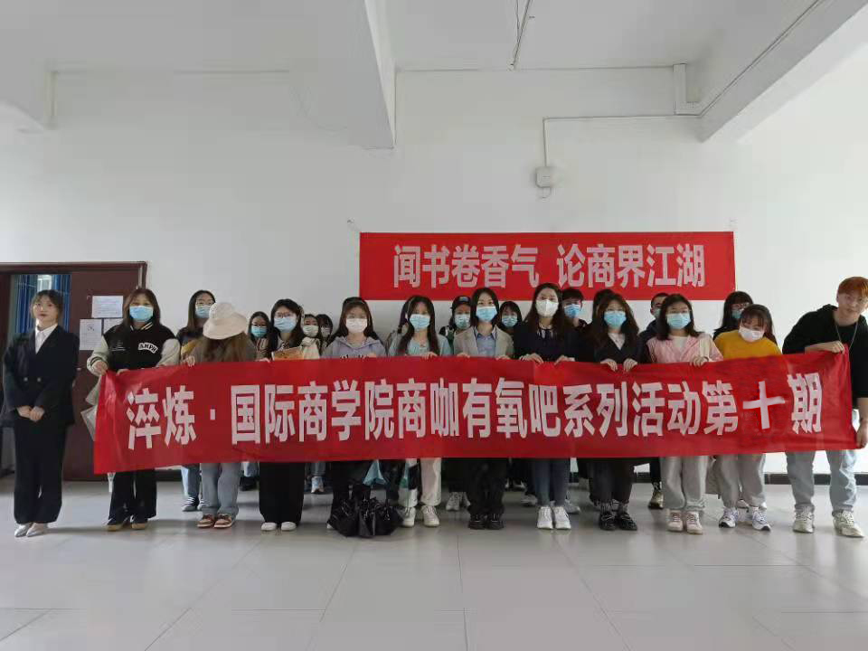 外国语学院学生会权益部、中德应用技术学院书院服务部、书法与美术协会在4月17日联合举办大咖阅读主题书法活动。参赛者可以根据大咖阅读系列中富有意义的语句进行书法创作,也可以自己选择喜欢的作品进行写作,使同学们充分感受大咖传记阅读的氛围。评选出的优秀书法作品,在现场逐一进行展示。活动不仅倡导大咖阅读,还可以进行硬笔书法创作,有助于提升同学们的整体素质。淬炼.国际商学院(合川校区)文创部于4月15日开展了第十期商咖有氧吧,学院陈思、周春君两位老师,以及2019级财务管理14班的全体同学参与其中。活动通过老师现场回答同学们作为商院的学生我们给自己目标应该是什么,应该学习哪些技能等问题,为同学们的大学就业发展指明方向,促进同学们的深度思考,提高同学们对商学认知,开拓同学们的思维和视野。