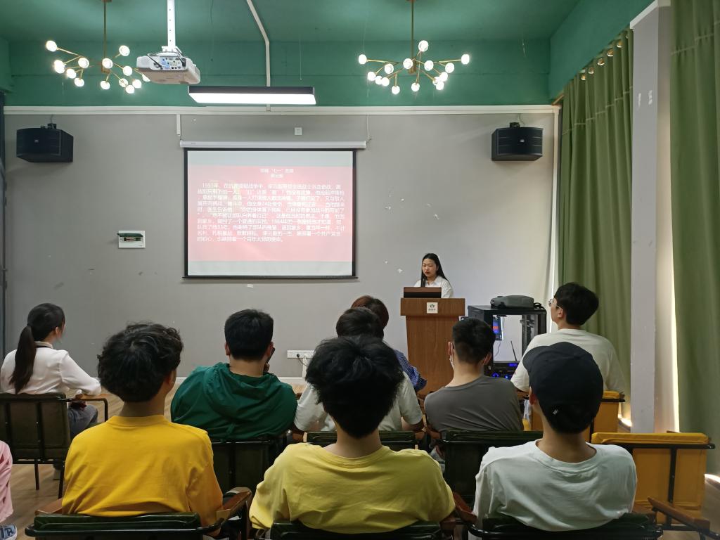 活动伊始,20级通工19班的王芹同学带来了精彩的分享,为同学们讲解了“绵阳县第一位共产党员谭德政”“荣耀七一勋章柴云振”“朱德在延安”“英雄母亲邓玉芬”等四个红色革命故事。她声情并茂地告诉在座师生:英雄们的人生,不仅映照着共产党员的初心,更映照着百年大党的使命,他们扛起了救亡图存的重担,用实际行动肩负起中华民族伟大复兴的历史责任,以一种势不可挡的革命力量,宣告了中华民族是不可消灭的。