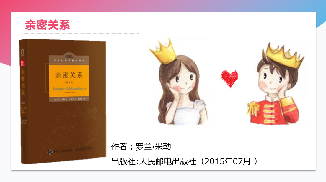 第二个则是相似性,不仅指是性格的相似,还包含了你们的三观、教育程度和宗教信仰等等。共同语言、相似的兴趣爱好除了能让彼此注意到自己更能让两人相处过程更融洽。同时,也从心理学的角度介绍了邻近性、高能力和相互性对吸引力的影响。除此以外,郑老师也希望同学们能通过阅读罗兰·米勒的《亲密关系》的这本关于友谊和爱情的学术著作,更好地经营亲密关系。