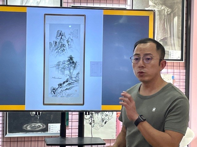 任何事物都不能缺少一双发现美的眼睛,所以闫公博老师先带领同学们学会欣赏一幅画作,在众多的画作中发现各自的特点与独特的美,从颜色的搭配、笔墨浓淡的变化,到笔触的用法等方面,一一赏析画作之美,又从美中吸取经验,提取理论知识,以用于实际作画。由于同学们的国画基础薄弱,所以闫公博老师给同学们欣赏的画作有在美术馆展示的名画、国画老师的作品以及相仿年纪的学生作品,从国画艺术的不同维度,一步一步打开国画的大门。
