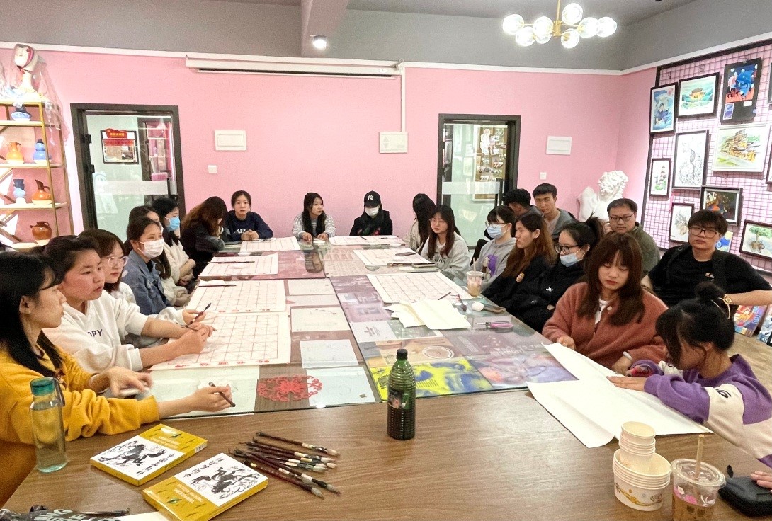 2021年末,艺术传媒学院闫公博老师在同学院刘应晶老师的邀请下,为2021级淬炼商学院专升本学生敲响了国画之钟,同学们反映良好,不仅提高了国画的普及度,还让不少同学对国画有了浓厚的兴趣。在同学们的建议下,刘应晶老师再次邀请闫公博老师为同学们讲授国画之韵,于3月9日16时在爱莲书院艺术实践室,再次踏上国画之旅。
