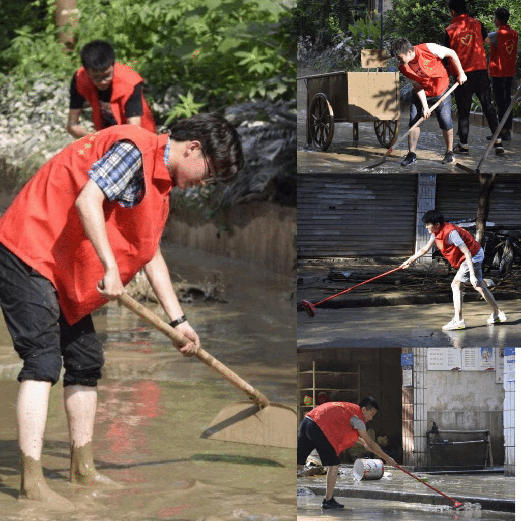2018年7月14日上午6:30,由重庆邮电大学移通学院在校志愿者所组成的抗洪救灾小分队前往合川区青龙街道,对受洪峰影响的低洼地区进行除污工作。满地淤泥,与印象里整洁的街道出入甚大,看到这样场景的志愿者们纷纷拿起工具,挥锹铲泥、舞臂推水。