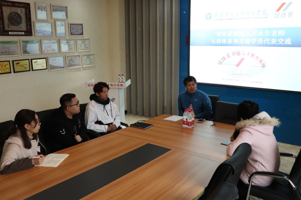 双体学子在与吕永生老师交流后,收获了更多的经验。他们将重新审视自己的目标,确立学习方向,为了远方的那一份绚烂而再次蓄积力量。时光易逝,唯有抓住一朝一夕,坚持不懈,时刻蛰伏,方能扬帆起航,迎接新世界的到来。