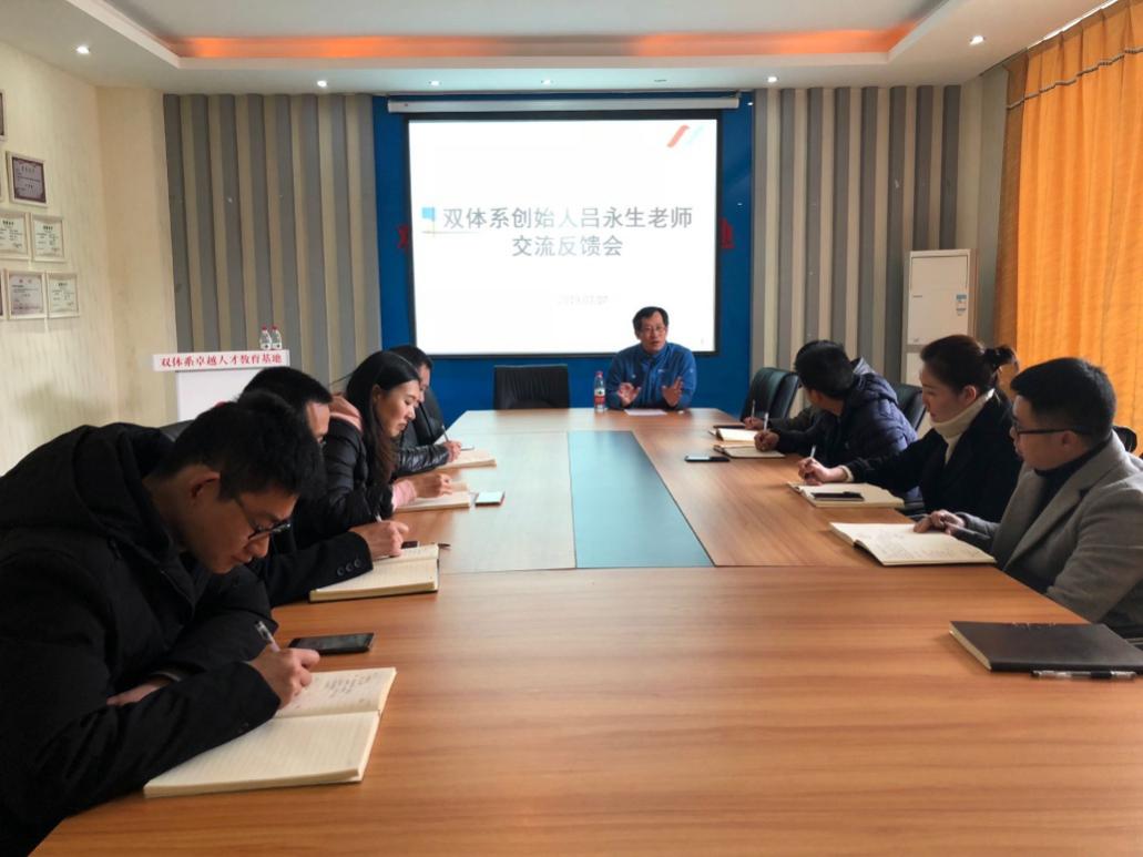 吕永生老师公开课结束后,双体系教师反馈交流会在双体系会议室举行。吕老师针对此次与学员的交流、参加双体系教学活动、基地总经理竞选活动、职场、技术课程旁听等发现的问题进行集中反馈,就引导学员平衡学习时间、技术基础好的学员如何更深入学习、如何选拔更合适的学员等给出自己的建议,双体系教师也将根据吕老师的建议对相关内容进行优化。