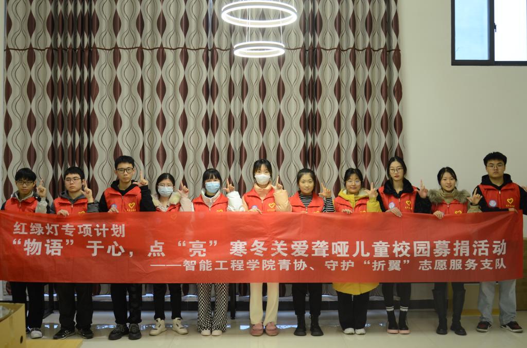2021年12月13日,守护“折翼”天使儿童帮扶志愿服务专项支队联合智能工程学院青年志愿者协会开展以“物语”于心,点“亮”寒冬—关爱聋哑儿童为主题的募捐活动。本次活动旨在号召大学生关爱“折翼”小朋友,以志愿的微薄之力,照亮“折翼”小朋友前行的道路。