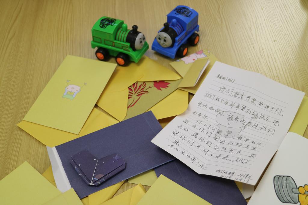 合川特殊教育学校——此次爱心“外卖”的配送地,志愿者们将“物语于心·点亮寒冬”校园募捐活动的爱心物资送到了“折翼”小朋友们手中,并在小朋友们中播放起了录制好的防疫和元旦祝福视频。