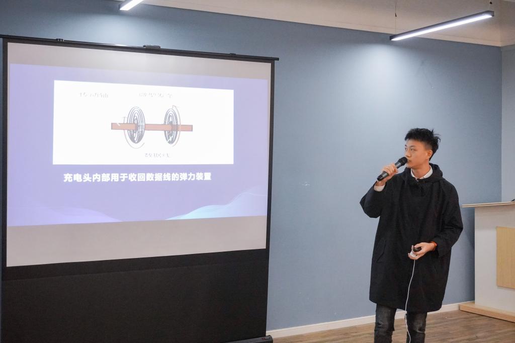 现场答辩环节于11月22日12:30在汇江书院多功能活动室举行,邀请到团委岳振远老师、书院部夏小敬老师、汇江书院程晓娇老师及第二届全国大学生创新体验竞赛获奖者邓雅珲、王辰诚同学作为本次答辩会的评委。九名同学顺利进入到答辩环节,在规定时间内阐述创新设想,并回答评委提问。选手董一帆提出了自创培训计划,希望推动时代的浪潮,将我国变为人工智能时代。胡崇均同学的创意十分贴近生活,他将充电头和数据线合二为一,将数据线隐藏在充电头中,这种结合极大地方便了使用。夏小敬老师鼓励并肯定了胡崇均的创新点子,并对这个创意提出了可操作性及实用性建议。李楠同学讲述的“便捷点餐服务”十分吸引人,为排队点餐和遭遇占座的苦恼提供了解决方案。经过激烈的角逐,胡崇均同学最终获得比赛一等奖。