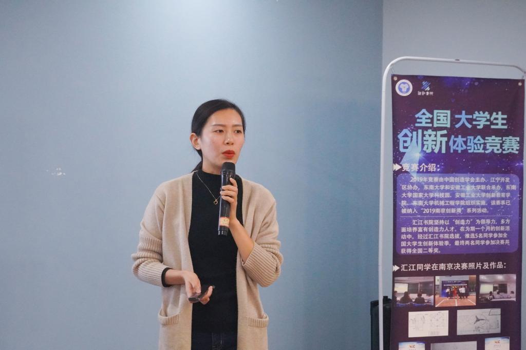 10月16日,活动开幕式在汇江书院多功能活动室举行,活动邀请了汇江书院学生发展导师刘小路老师和获得第二届全国大学生创新体验竞赛二等奖的邓雅珲学姐到场为大家分享经验。