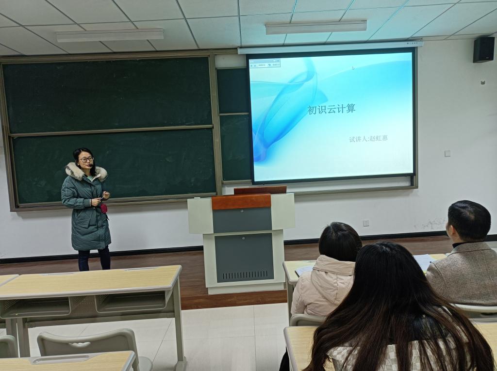 本次示范课中赵虹惠老师选择的内容取自教材《云计算与大数据》第一章,以“初识云计算”为主题向大数据教研室全体教师进行示范课授课。