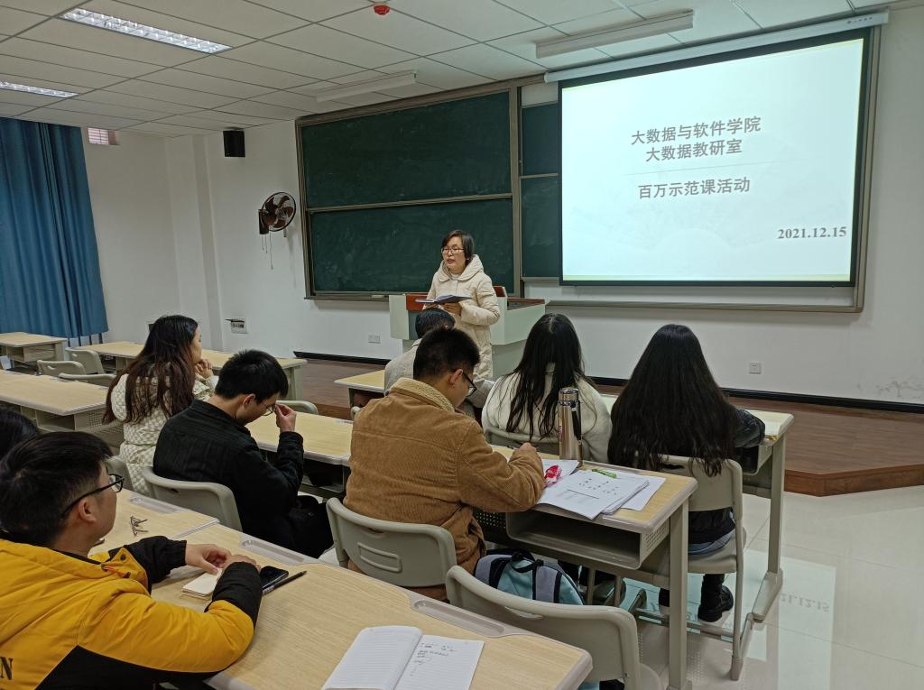 “师也者,教之以事而喻诸德也”,为人师表者,不仅仅要教书,更要育人。为促进教研室各个老师之间的教学交流,探讨课程思政的教学建设,12月15日下午3点,大数据教研室在9113教室举行“远景百万奖励基金优秀教师示范课”。本次示范课由大数据教研室主任李静毅老师主持,赵虹惠老师主讲,大数据与软件学院副院长向碧群老师及教研室全体专职教师参与。