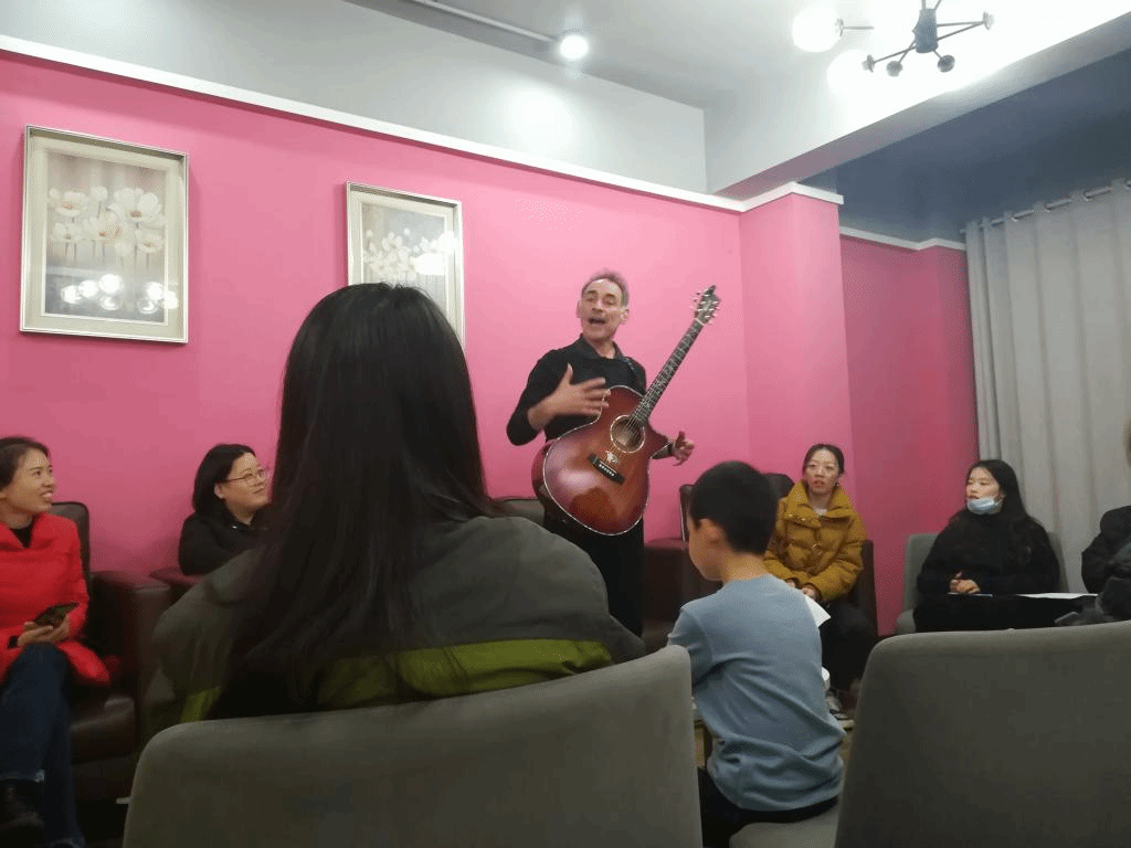 第二期英语角活动在爱莲书院举行。步入活动室,首先映入眼帘的是摆在桌上的色彩斑斓、种类各异的糖果,原来这些都是外教Clive为同学们准备的。Clive早早地来到了活动室,热情地招呼每一位同学就坐。为了帮同学们打消顾虑,Clive用简单的英语问起同学们的近况和假期安排,瞬间拉进了与同学们的距离。活动伊始,Clive抛出了本次英语角的主题:如果时光倒流,你想回到哪个时代?扮演什么角色?同学们发挥天马行空的想象力,描绘出了一个个或滑稽搞笑或发人深省的故事。活动第二阶段,Clive弹奏吉他热情洋溢地唱起英文版的《斑马 斑马》,同学们在Clive的带动下,也跟着哼唱,因为发音不准,还时常跑调,大家笑作一团,本学期最后一次英语角活动在一片欢声笑语中落下帷幕。