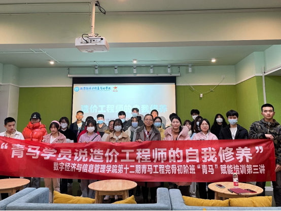 时代殷殷嘱托,青年砥砺前行。为展现优秀造价师的自我修养,将专业教育融入“青马工程”,依托工程管理专业不断打磨青马学员专业素养底色,我院于12月8日15:00在双栀书院多功能影音室举办“青马学员说造价工程师的自我修养”第十二期青马工程完骨初阶班“青马”赋能培训第三讲。本次培训有幸邀请到数字经济与信息管理学院高级工程师李红艳老师,志愿服务版块指导老师王瑞老师出席本次活动。