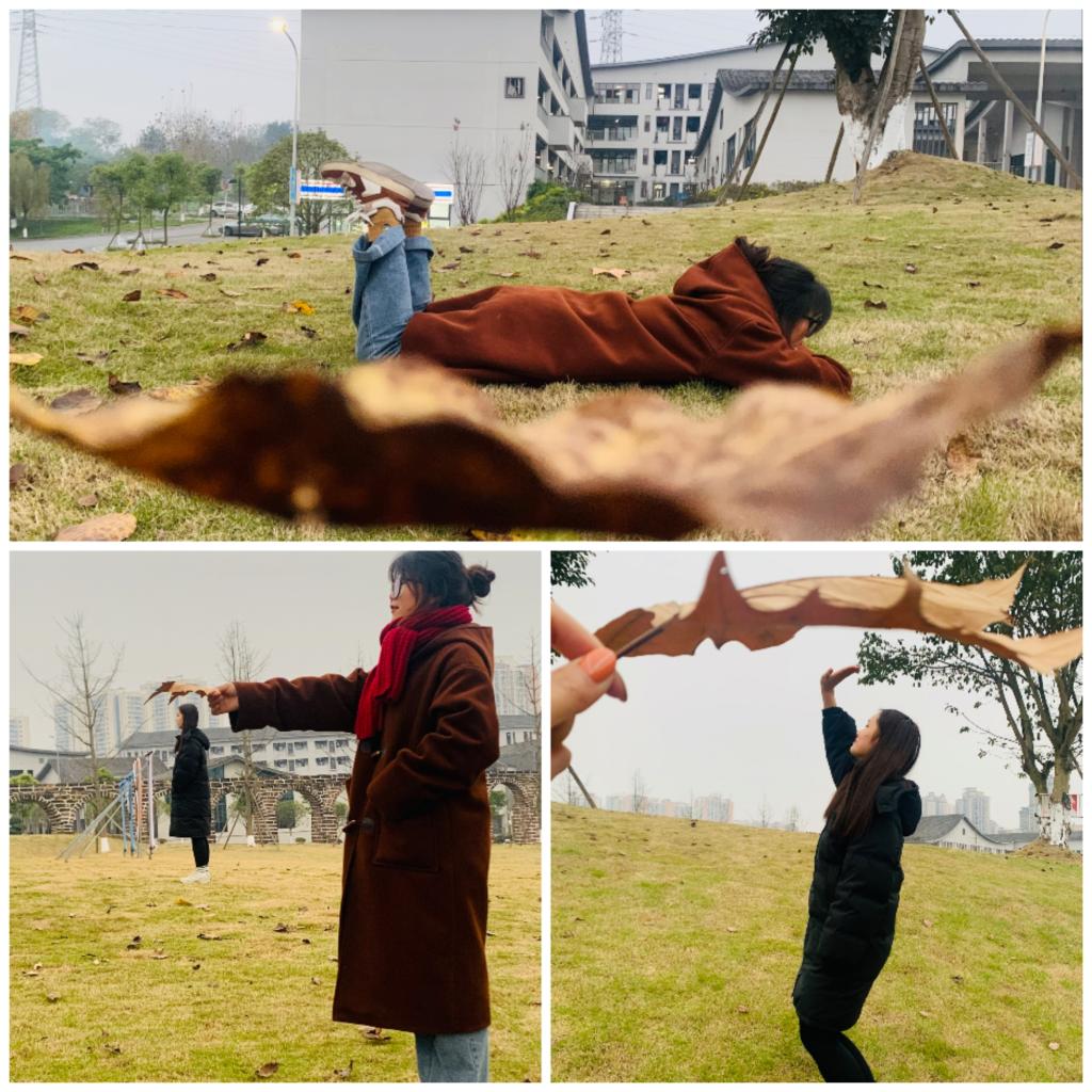 寒冷的冬日中,人们对生活的热情依旧。青春的热情模样好似与冬日的寒冷并不相容。同学们想象着不同的造型与创意:枫叶可以是帽子,银杏叶可以是裙子,长青树的叶子可以是翅膀……大家摆着搞笑而又有创意的姿势,化身“落叶魔法师”,为冬季的移通增添了无限的时尚和浪漫气息。在落叶纷飞的季节里,你是否会想要停下匆忙的脚步,运用常见的落叶,摆出一个笑意满满的笑脸为生活充充电,亦或者分享给你想要传递快乐的那个人。