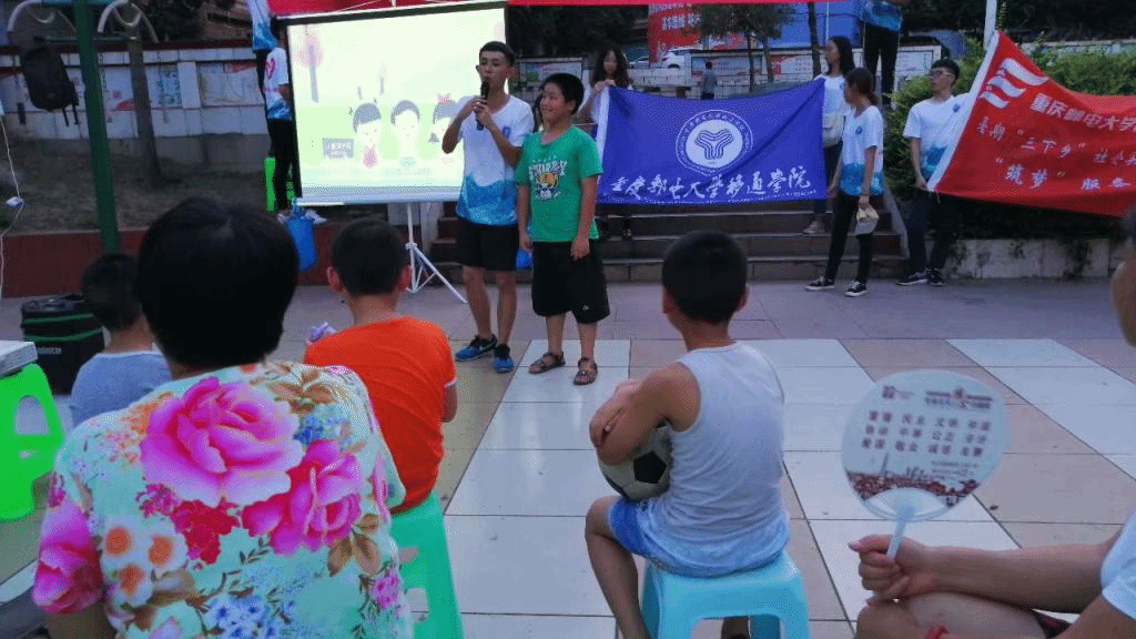 湿础人沾汗际,蒸林蝉烈号时。2018年7月19日,在三下乡的第三天傍晚,“筑梦”服务队的队员们来到土场镇土主社区广场,为小朋友们展开了一场别开生面的未成年保护法宣传院坝会。