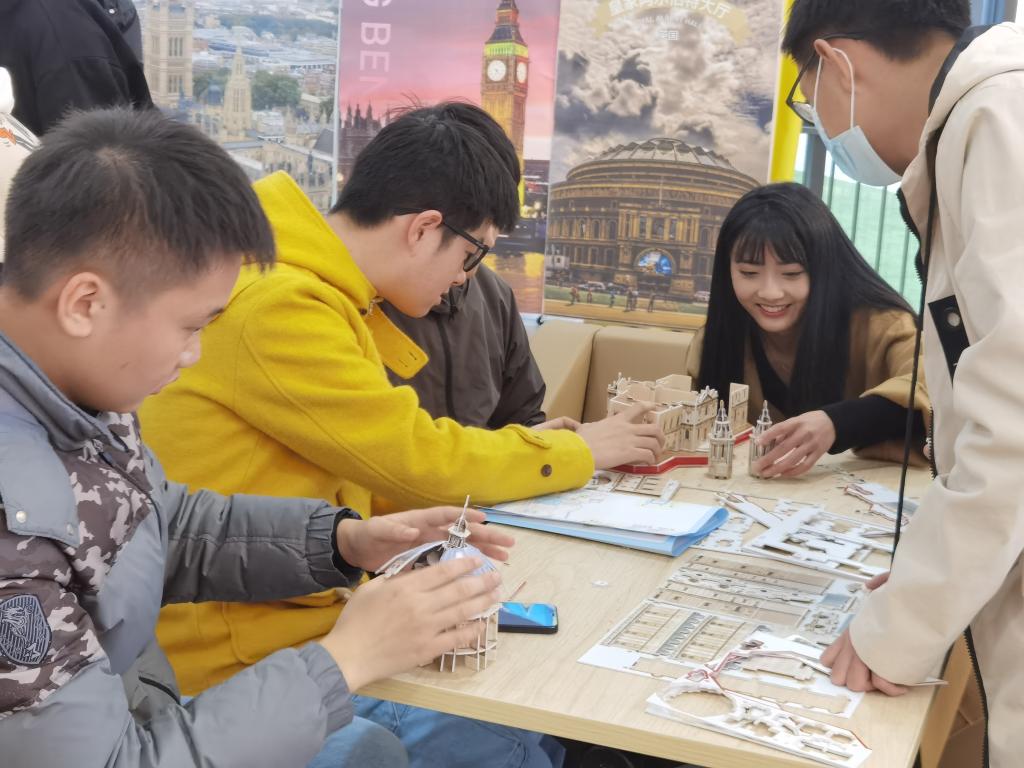 纸上得来终觉浅,为了巩固同学们对伦敦的了解,在场的同学们随机分组,在雷梦莹老师的讲解指导下,共同完成了伦敦的地标建筑双子塔桥、圣保罗大教堂、伦敦街景三幅立体拼图,在实践中加深了对伦敦的城市印象和对英式文化的认知。