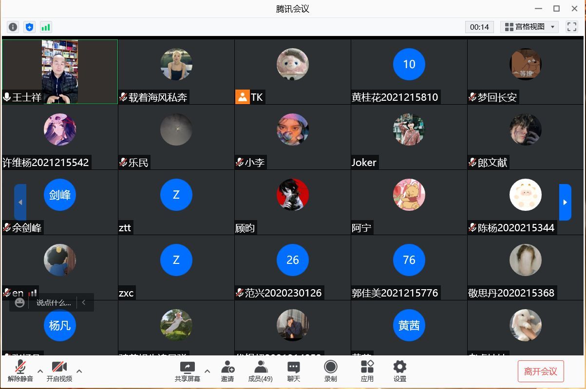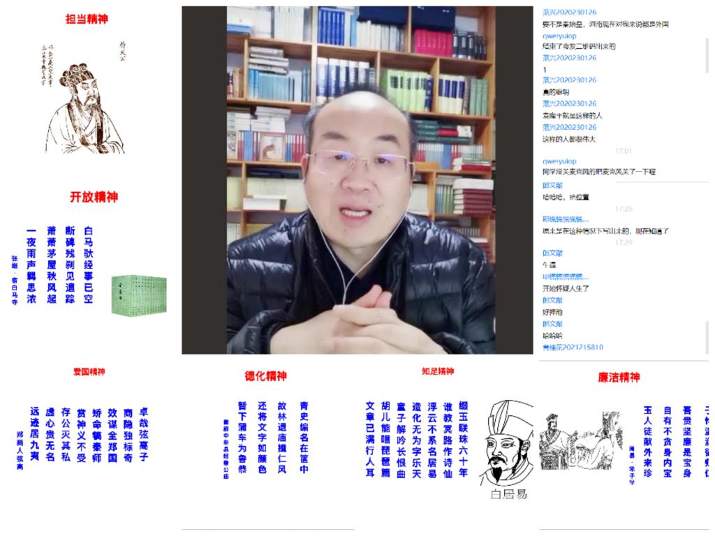 莫笑农家腊酒浑,丰年留客足鸡豚,“在你的心里面,家是一个什么样的存在”,王教授问到。问题一出两百余名在线学员通过文字描述出各自心中家的形象。学员们纷纷回答:“家是寄托,家是避风港”。王教授对此作出相应解释并提出自己的观点。在聆听了王院长的授课后刘艳艳同学感受颇多,主动要求连麦为大家朗读了余光中的《乡愁》,“乡愁是一枚小小的邮票......”触动的声音优美语句表达出她自身对此次活动及家文化最真挚情感。加深同学们对家文化的感悟,同时增添着北山书院坚韧文化的韵味。
