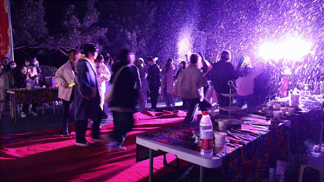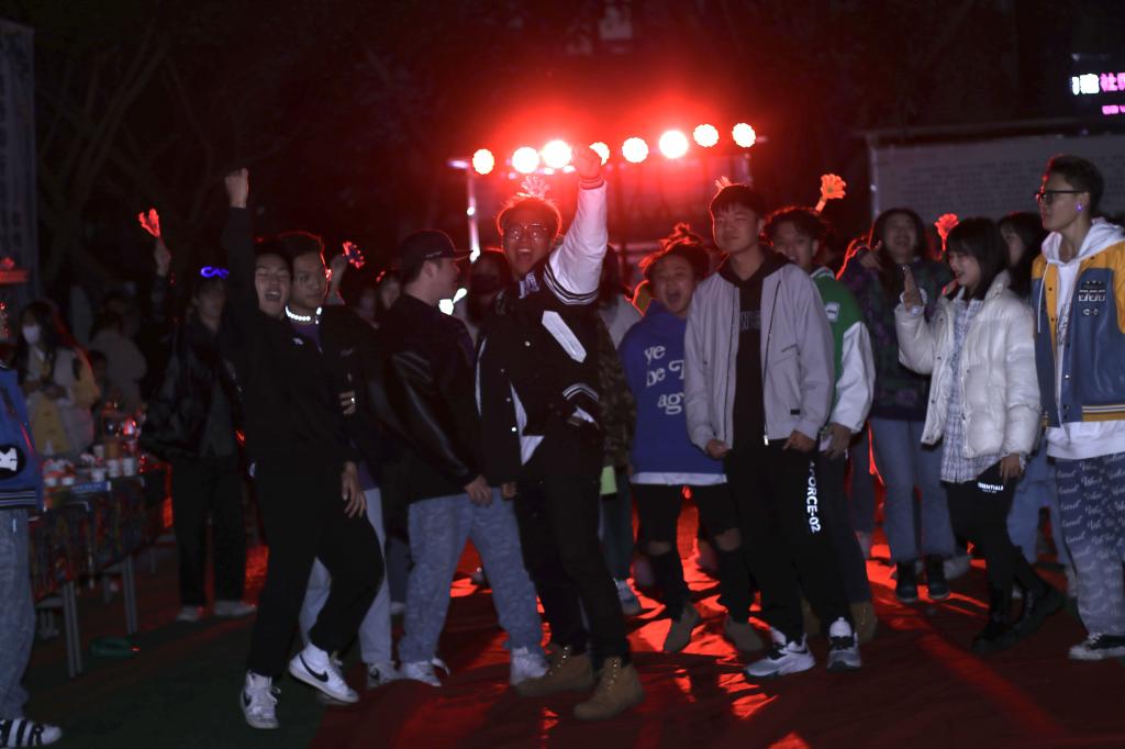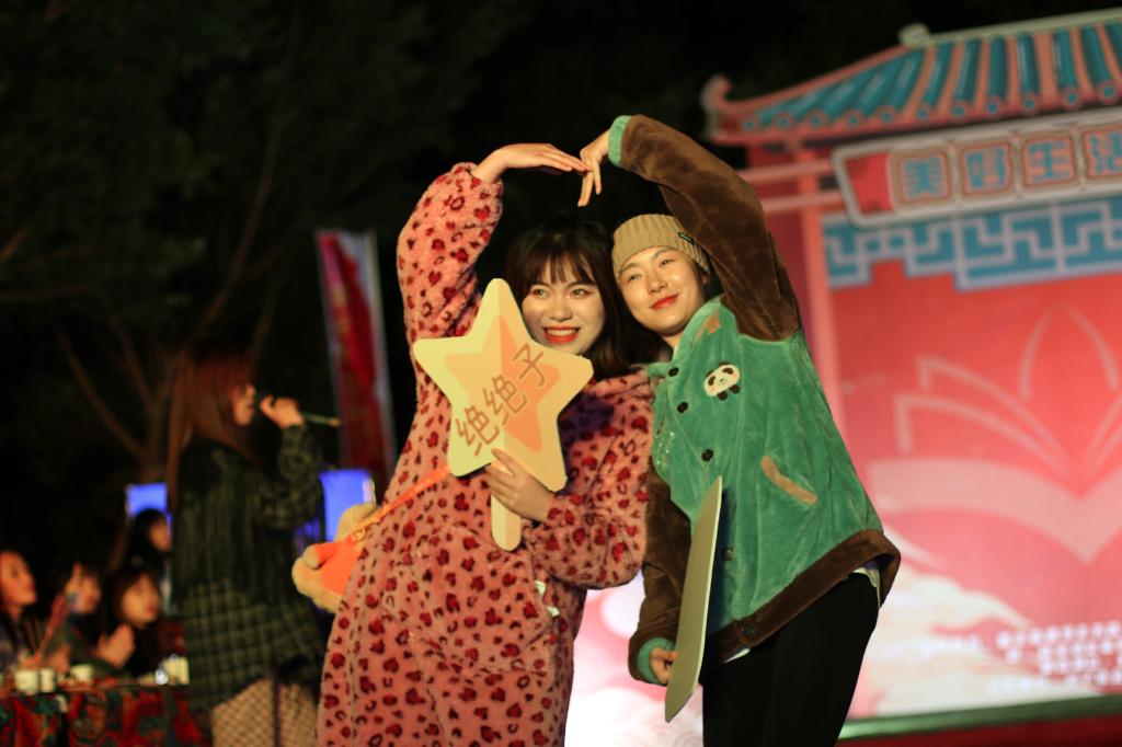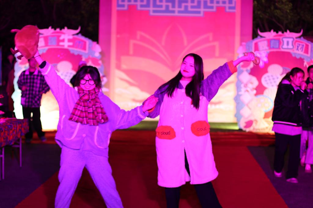 同学们说“睡衣派对”才是最需要创意的,作为爱莲的时尚潮儿,大家需要提前创作自己的睡衣搭配,设计“ending pose”,每个人都想做舞台上最特别的秀者。参与睡衣趴的同学及老师们通过多种单品的搭配及各类装饰品将舒适的睡衣与热闹的户外紧密结合,走秀环节,我们按照品牌大秀的模式,将激情的现场演唱与师生的时尚大秀搭配,使现场迸发出了意想不到的乐趣与绚烂。冬日又怎能缺少下“雪的乐趣”,在雪花机的助力下,移通的第一场雪纷然而下,现场氛围感拉满,同学们纷纷举起相机拍照留念,双手舞动,嗨爆全场!现场俨然成了欢乐的派对海洋。