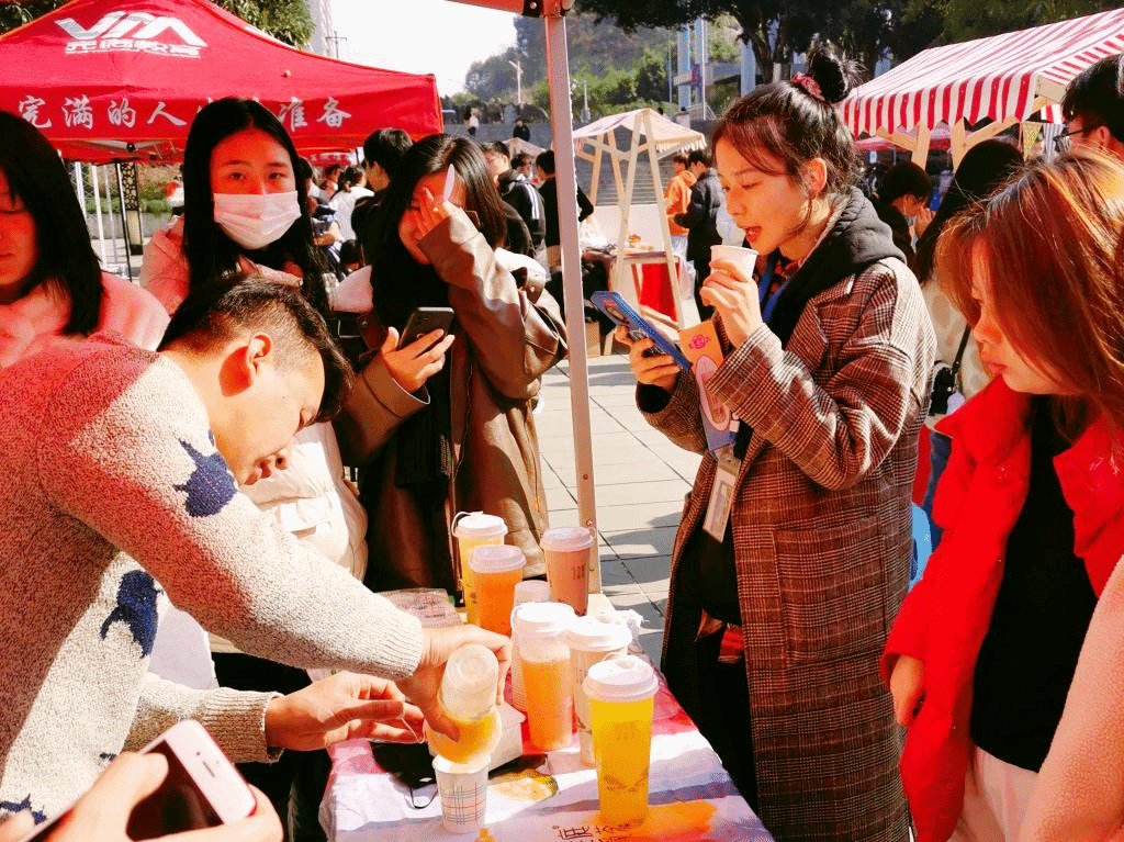 真实情景下的实践,才会更有意义。以学生体验为主导,规避片面、填鸭式教学模式,以知识学习为基础,配合操作性实战,通过学生团队自主提前筹备、组团设计摊位店招、现场头脑风暴宣传口号,充分发挥了学生的主观能动性。