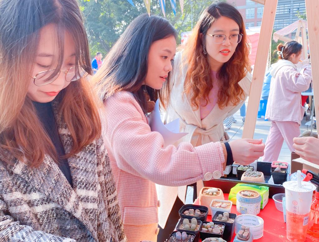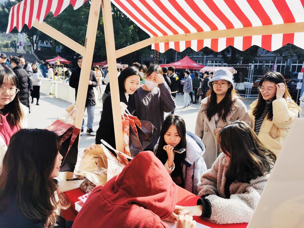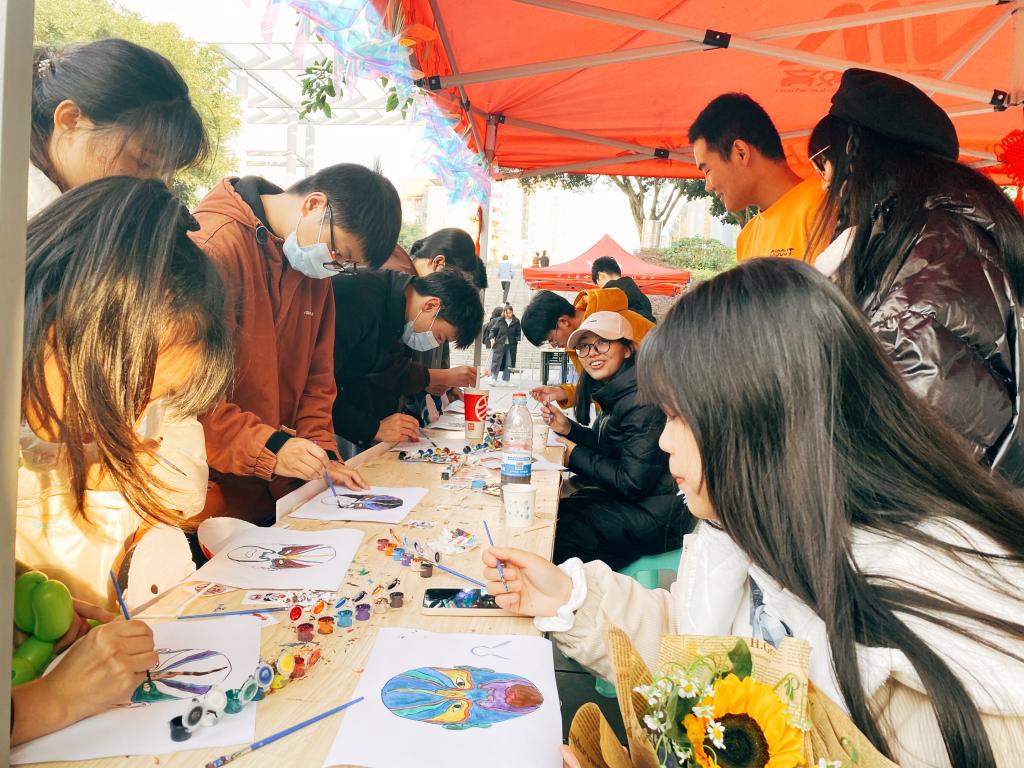 活动当日,除了为校内同学设置的营销摊位外,还有爱莲监管团队为吸引人气而准备的周边体验区,共吸引2000余名师生前来打卡参与。“梅竹莲心”,同学们与专业花艺师一起捕捉灵感,进行花艺创作;“生旦净末丑”,同学们用各色的颜料绘成了专属自己的脸谱;“画与时光同眠”,同学们妙思如泉,在纯白布包上定义新潮流......多维的体验,带领同学在欢乐中唤起书院记忆,也让我们的“市场”运行更牛!更饱满!