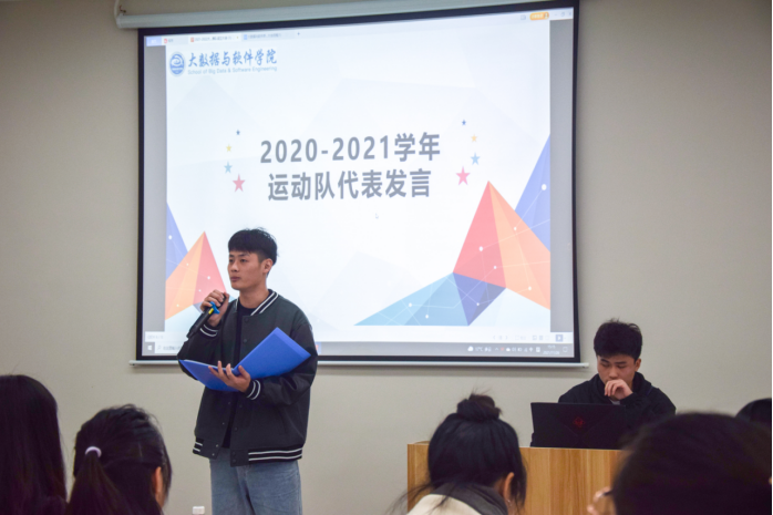 本次大会由大数据与软件学院竞技体育指导老师陈志远老师致辞拉开序幕。过去的一年里,学院代表队员们赛场上飒爽的英姿历历在目,他们用自己的拼搏取得了令人满意的成果,下面大家通过视频回顾了各位运动健儿们在2020-2021学年比赛时的精彩瞬间,感受竞技体育的魅力。在赛场上,运动健儿们挥洒汗水,伴随着矫健的步伐,奏响希望的乐章;他们把每一种信念放在蔚蓝的天空,伴随着坚定的目光,画出美丽的弧线,呼喊着青少年的梦想。新年新希望,希望在接下来的一年大数据与软件学院体育代表队仍保持竞技之心,继续拼搏出属于他们的未来。