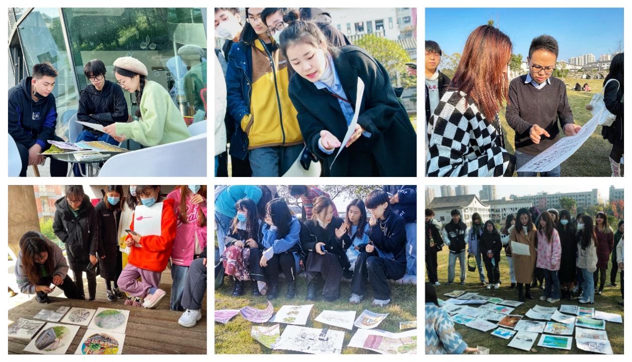 在写生过程中发现学生在整理和提炼画面的创新创意和构图上面有一定的不足之处,指导老师们及时的给出建议和指导,帮助学生们打开写生的思路,鼓励创新,并让学生进行作品互评,学会欣赏不同风格的作品,提高审美能力,找出自己作品存在的问题,从而帮助学生不断完善自己的作品风格和表现手法,提升自己的专业技能,用画笔抒写美好的校园。同时,为了同学们在作品中将“艺术+技术+科幻”相结合,特别邀请了科幻中心涂尧老师对同学们画面进行现场指导,她提到科幻具有广泛性和多元性;科幻元素可以在任意程度和任意作品中结合,希望同学们用科幻画面预演未来校园。